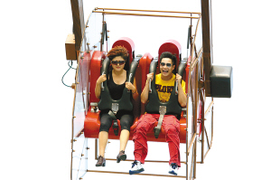 沖上云霄、過山車、大擺錘……小沈陽一共玩了八個(gè)項(xiàng)目,全是主題公園里最考驗(yàn)人膽量的游樂項(xiàng)目。但小沈陽完全不放在眼里,他挑選了過山車的第一排坐;而坐在海盜船上的時(shí)候,他卻又挑了最后一排,甚至在海盜船擺蕩至最高處的時(shí)候,他竟然拉開了安全擋桿,站了起來大喊大叫,“完全玩瘋了,倒是下面的游客被他嚇得半死。”陪同的楊小姐說:“他告訴我,他很喜歡去游樂園玩,最喜歡迪斯尼。”小沈陽最后還對龍門陣提了意見:“他說玩得挺盡興的,不過與迪斯尼相比,還是要多多努力。”