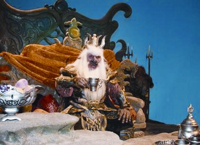 當(dāng)記者來到攝影棚時(shí),正在拍攝的場(chǎng)景是牛魔王殿前獨(dú)酌的一場(chǎng)戲,身為主角的唐僧師徒四人則不見蹤影,只見魁梧威嚴(yán)、黑臉白須的“牛魔王”端坐在寶座上,數(shù)十名青面獠牙的“小妖”分列兩旁。(周文韜)