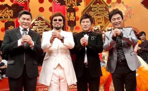 前天,4位“大腕級”的臺灣“綜藝大哥大”張菲、胡瓜、吳宗憲和澎恰恰首度同臺,主持中視除夕特別節目“虎年旺旺慶團圓”。4人進棚錄像,大伙笑稱是“四大天王”。張菲和胡瓜師徒2人曾在去年莫拉克風災后,共同主持公益慈善晚會,但4人同臺主持還是首例。