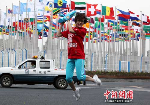 中新網(wǎng)5月7日電 5月6日,演員、歌手金巧巧輕裝來(lái)到上海,搭上2010上海世博會(huì)首周游覽的末班車。此行,金巧巧很是悠閑自得,隨行僅一名助理,在接受媒體采訪時(shí)她說(shuō),“北京在一場(chǎng)大雨之后天氣熱了好多,沒(méi)想到上海更是熱得不行。”