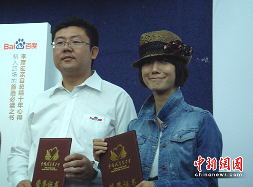 中新網(wǎng)5月10日電 (李季) 10日上午,《壹百度》的姊妹篇《壹百度2——人生可以走直線》在北京大學(xué)舉行首發(fā)儀式。王珞丹作為新書公益大使除了幫助職場(chǎng)新人解讀“陽光法則”外,還向中國扶貧基金會(huì)“宣告”:每賣出一本《人生可以走直線》自己將與百度一起為扶貧基金會(huì)“新長(zhǎng)城自強(qiáng)助學(xué)基金”捐出一元錢。