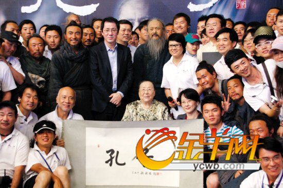 嚴謹的孔老用“周同志”來稱呼周潤發,引起現場一片善意的笑聲。孔老還表示自己看過“周同志”之前的很多電影,是他的影迷,因此當初知道是由周潤發來扮演孔子,她就松了口氣。這次親臨現場看周潤發演戲,更覺得他演的孔子形神兼備,甚至比自己當初想像的更加出色。她跟周潤發反復強調:“讓你來演孔子,是不會錯的!” 但沒能見到扮演南子的周迅和扮演孔妻的張凱麗,孔老略表遺憾。