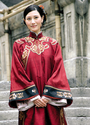昨天,婚后首度拍戲的李嘉欣,穿一身華麗而又低調的酒紅色古裝出現,發髻盤起,淺笑吟吟,站在“舊中環”的石階上,回眸一笑百媚生。