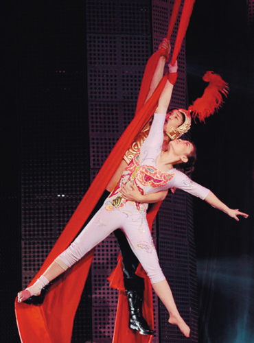 而整個(gè)節(jié)目的高潮,是在小沈陽換上露臍的盔甲裝,演唱電影《神話》主題曲。除了賣力演唱,他還在舞臺(tái)上玩了次“武俠”,手抓紅綢緞,在工體館上空飛來飛去,引得全場(chǎng)尖叫。