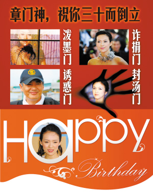 前天是2月9日,章子怡31歲生日,繼“潑墨門”、“詐捐門”、“誘惑門”(周潤發稱出演《臥虎藏龍》時曾受到某女星誘惑,網友紛紛將懷疑對象鎖定章子怡)之后,如今又誕生了一個新的八卦“門”———“封湯門”:導演陸川微博發文引網友熱議,章子怡被指疑似封殺湯唯幕后黑手。