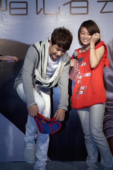 9月8日發(fā)行新專(zhuān)輯《木頭人》后,阿穆隆在本次簽唱會(huì)上首次與歌迷進(jìn)行面對(duì)面交流,歌迷們把握住難得的機(jī)會(huì),為偶像送上《木頭人》MV中的“木頭心”、專(zhuān)業(yè)定制的麥克風(fēng)和超人內(nèi)褲作為禮物慶賀阿穆隆順利發(fā)片,寓意著“木頭人”阿穆隆拿著麥克風(fēng)在舞臺(tái)上唱歌時(shí)即刻變身為“音樂(lè)超人”。值得一提的是,歌迷送上的麥克風(fēng)是專(zhuān)門(mén)為阿穆隆量“聲”定制的森海塞爾專(zhuān)業(yè)麥克風(fēng),更在麥克風(fēng)上用施華洛世奇水晶鑲上了阿穆隆歌迷會(huì)的LOGO,在此之前張惠妹、韓紅、孫楠等天王天后們?cè)谠撈放茷樽约憾ㄖ屏藢?zhuān)屬于自己的麥克風(fēng),此次歌迷送上如此大禮讓阿穆隆坐享“天”字號(hào)藝人的待遇,讓阿穆隆感動(dòng)不已,倍受鼓舞。