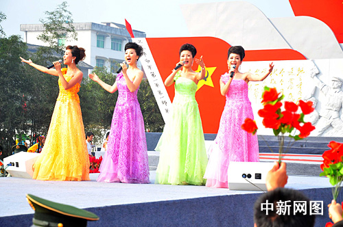 中新網銅鼓9月3日電(段長征 劉占昆)10月3日上午,為慶祝新中國60周年華誕,“為祖國喝彩”—《中國紅歌會》首次走進小縣城江西銅鼓,曲措、徐丹、梅林組合、蔡飛等近40名歷屆優秀紅歌手激情獻唱。