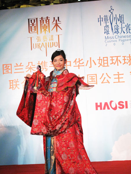 鳥(niǎo)巢版《圖蘭朵》是著名導(dǎo)演張藝謀率北京奧運(yùn)會(huì)開(kāi)幕式原班人馬打造的又一鴻篇巨制,中國(guó)公主是普契尼《圖蘭朵》中的經(jīng)典,也是這部歌劇塑造的重點(diǎn)人物。首演準(zhǔn)備工作進(jìn)入倒計(jì)時(shí)之際,《圖蘭朵》攜手“中華小姐環(huán)球大賽”選拔出了“中國(guó)公主”代言這部曠世著作。鳳凰衛(wèi)視主持人沈星主持了當(dāng)天的活動(dòng)。