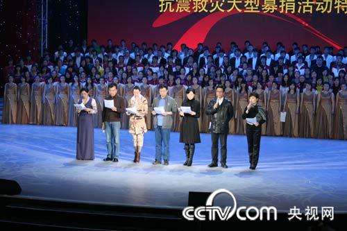 央視知名主持人周濤、朱軍、董卿、張澤群將作主持、采訪人;白巖松、李瑞英作新聞連線人;李詠、畢福劍、馬東、朱迅、任魯豫、崔永元、王小丫、撒貝寧、鞠萍、韓喬生、董浩、歐陽(yáng)夏丹、李梓萌、胡蝶、魯健等50人擔(dān)任現(xiàn)場(chǎng)捐助熱線電話接線員。