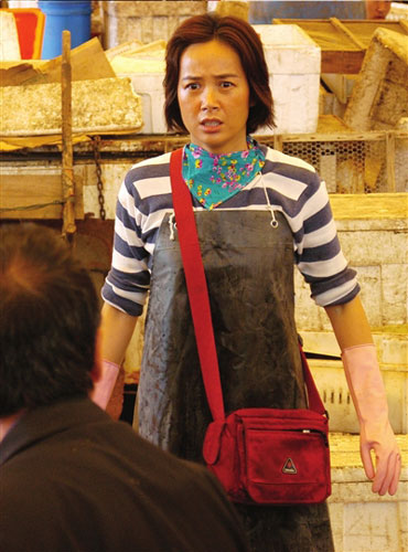 動氣氛很幸!。新劇中,蔣雯麗不僅不化妝,還讓化妝師每天給她往臉上畫雀斑和勞動?jì)D女特有的“大紅腮”。