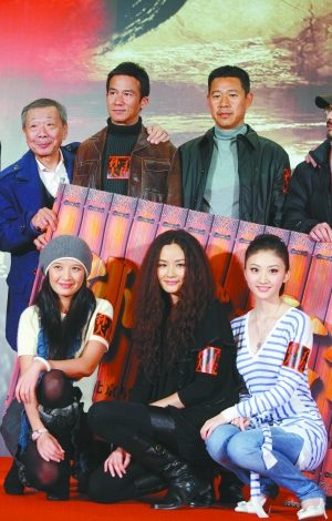 由午馬、李子雄和張豐毅(后排從左至右)主演的《孫子大傳》備受矚目,“孫武”將在片中與由李煜、瞿穎和景甜(前排從左至右)扮演的三位女性發(fā)生感情糾葛。本報記者 郭延冰 攝