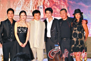 成龍現場只肯透露少少劇情,“那是戰爭故事,我是個上年紀的大兵,把小將王力宏綁架,中途發生不同事情,你會看見幽默、武打和悲情。”他說,關于小將的人選其實本來有三個人選,分別是房祖名、吳彥祖、王力宏,成龍坦言本來自己屬意房祖名,但后來覺得父子兵上場一對戲很容易笑場,成龍馬上“大義滅親”停用兒子。“我本來還是要選吳彥祖,因為他是我自己一手帶出來的”,但由于大哥與吳彥祖剛剛合作完新宿事件,而夫人林鳳嬌力薦王力宏,他笑對王力宏稱“你一定要感謝那位林小姐,小房(祖名)子他媽!”發布會儼然成了成龍的粉絲見面會。來自韓國的劉承俊說接到成龍邀請的時候,他激動到“真的流眼淚了。”