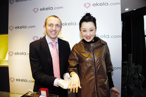 昨天中午在南京國貿中心樓上比利時e克拉鉆石中國區南京體驗店里,白色的重瓣玫瑰安靜地綻放著,顯得分外美麗,專程從意大利趕過來的著名比利時品牌e克拉全球CEO兼首席設計師卡拉多·魯德羅大師,在滿懷期待地等候著一位代表著中國女性獨有美麗的客人——許晴。這位意大利的高級珠寶制造商,曾經為凱特·溫斯萊特等設計過首飾,他的設計品曾進入柏林電影節、香港金像獎和歐洲一流畫展的名模展示活動中。見識過世界上各種美麗女人的他對中國女性的美情有獨鐘,他說:“我曾經跟章子怡、周迅等人合作過,許晴似乎比其他演員更有著東方女性的典雅和風情。”