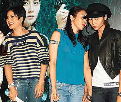 鄭伊健新舊戀人蒙嘉慧和邵美琪昨日公開碰頭,蒙嘉慧突然與黎姿姊妹情深,手拖手耳語,但亦難掩尷尬神色。