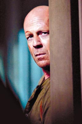 今日,《虎膽龍威4.0》與廣州觀眾見面。這部影片不僅要面臨《色,戒》的余威,還要與另一部好萊塢大片《諜影重重3》打擂臺,但是發行方仍然看好影片的票房,因為該片的前三集已積累了大量的鐵桿粉絲,因為該片的主演是大名鼎鼎的布魯斯·威利斯。今年52歲的布魯斯·威利斯尚能打否?看過影片的記者贊揚:寶刀未老,十分火爆。布魯斯·威利斯則自夸:“我還是25歲的小青年!”