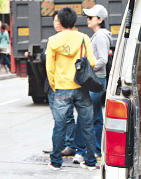 嘉玲(右一)在街頭等車,不時(shí)東張西望。