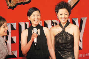葛優看著三位“女友”,模仿起影片的口吻來:“十年了,我很懷念她”。雖未指明是哪個“她”,但老搭檔劉蓓顯得非常開心,搶先回應道:“很開心成為馮小剛第一部賀歲片的女主角”。而徐帆更是激動得熱淚盈眶:“因為有了賀歲片,讓觀眾開始愛看電影了,觀眾和電影演員之間的距離更近了。”至于站在一旁的范冰冰,延續了紅毯上的“無厘頭”發言,她曖昧地看了看葛優,笑著說:“我將青春獻給了你。”主持人吳佩慈接過話茬追問范冰冰:“你把青春獻給了誰?”范冰冰尷尬一笑,連忙解釋道:“說實在的,我們這些演員都把青春獻給了電影,希望觀眾支持中國電影”。薛姣