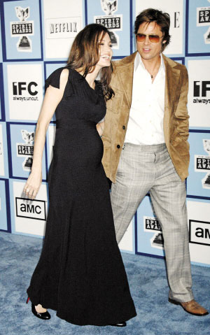 旨在獎(jiǎng)勵(lì)拍攝成本低于2000萬(wàn)美元電影的美國(guó)電影獨(dú)立獎(jiǎng)昨日頒獎(jiǎng),早前被證實(shí)有孕在身的安吉麗娜·茱莉與親密愛(ài)人皮拉德·皮特盛裝出席,茱莉身穿一身束身黑色禮服,凸起的小腹顯露無(wú)遺,兩人的幸福溢于言表。據(jù)美國(guó)《人物》雜志報(bào)道,有消息人士透露兩人對(duì)于未來(lái)新成員的加入感到十分興奮。