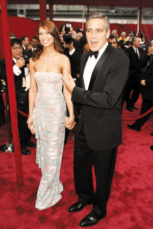 克魯尼紅地毯上與女友秀恩愛(ài) 臺(tái)下演"老友記"(圖)