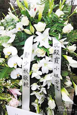 據悉,肥姐靈堂屬西式布置,十分簡潔莊嚴,靈柩全封,不設瞻仰遺容儀式。喪禮由岳華任司儀,欣宜致辭。肥姐的西式淺啡色靈柩擺在堂前中央位置,后面背景全是花圈,秋官的花圈也在花堆中并非在顯眼位置,靈柩上面則擺著欣宜敬挽的白玫瑰及白蝴蝶蘭花圈。其后,鄭欣宜與約30、40位近親好友為肥姐守夜,儀式約兩個小時。