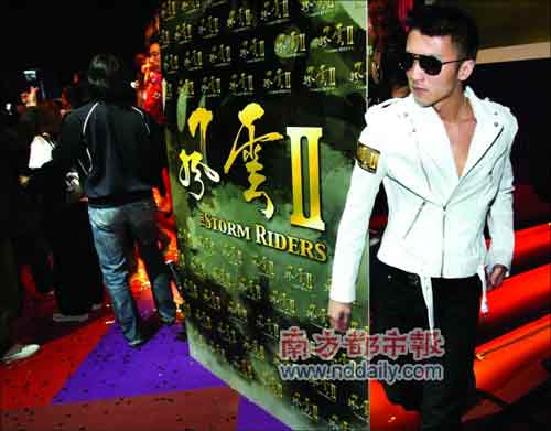 謝霆鋒當(dāng)天一件白色皮夾克亮相,照例戴著墨鏡,但在接受采訪時(shí)取下了眼鏡。他一臉笑容,似乎未受“艷照門”一事影響。他說:“聽到那件事(指艷照門一事)時(shí),我和我太太正坐車去看戲,聽到收音機(jī)里說,才知道這件事已經(jīng)鬧得那么大了!彼谡勗捴胁⒉槐芗蓮埌刂サ脑掝},記者問他拍動作戲難度時(shí),他主動提到柏芝:“我和我太太8年前拍第一部戲《老夫子》的時(shí)候就試過吊威亞了。”