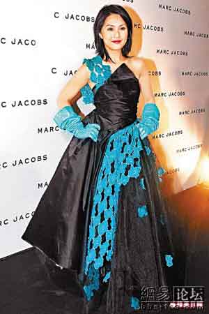 楊千嬅、梁詠琪和廖碧兒在香港出席“Marc Jacobs08年春夏時(shí)裝匯演”,早前因?yàn)榇㎝arc Jacobs晚裝而遭劣評(píng)的千嬅當(dāng)晚抵住壓力,繼續(xù)穿該品牌晚裝亮相(右),并且獲得設(shè)計(jì)師賞識(shí),以全場(chǎng)最貴價(jià)的14萬(wàn)元藍(lán)黑裙晚裝出場(chǎng),但這條裙子之前曾被維多利亞在Marc Jacobs廣告中穿過(guò)(左),少不得又被拿來(lái)比較一番。