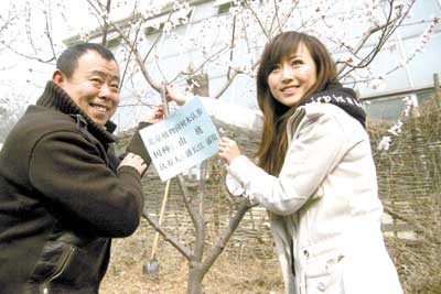 “金山銀山不如綠水青山。”昨天,在香山植物園,潘長江站在剛剛和女兒潘陽一起親手種下的一棵山桃樹前如是說。