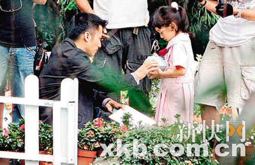 謝霆鋒與張靜初前日為英皇電影《證人》秘密開工,霆鋒與小演員演對手戲時分外認真和細心。