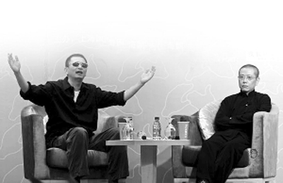 昨天的這個論壇雖是王家衛主持,但是他幾乎把所有時間留給陳丹青,自稱自己欽佩陳丹青多年,甘當配角。但是陳丹青卻一點也不給他面子。兩位大師一上臺,記者們就紛紛拍照,閃光燈閃成一片。誰料,陳丹青剛跟大家問過好,就指著王家衛說:“我是被他綁架來的。”他接著訴苦道,“坐在這臺子上,我不能抽煙。我一不抽煙智商就下降一半。雖然我知道抽煙不好。現在你們還不停拍我,我都快說不出話來了。”談了一會,陳丹青突然又來了句:“今天我好倒霉,先是被綁架來,現在發現襪子沒穿好,襪子幫太短,我不能把腿蹺著坐,老這樣端端正正地坐著,真累!”