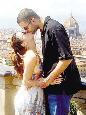 伊娃·朗格麗亞和丈夫托尼·帕克是公認的文體結盟模范夫妻,日前他們來到意大利佛羅倫薩。兩人手牽手在街道中閑逛,參觀博物館,在一座古堡前,嬌小的伊娃還踮起腳尖,深情親吻高大的丈夫。