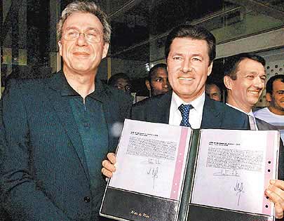 尼斯市長(右)與茱莉的醫生賽斯曼,公開龍鳳寶寶的出生證明。