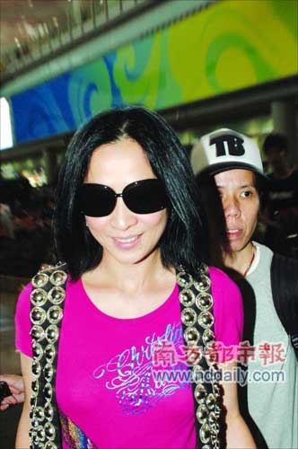 與以往大隊人馬護前應后的場面不同的是,此番劉嘉玲一行只有二人,走出安檢后,一名女子上前接應。劉嘉玲一路電話未停,手拎新款粉色香包,鑲嵌銀飾的馬甲格外耀眼。