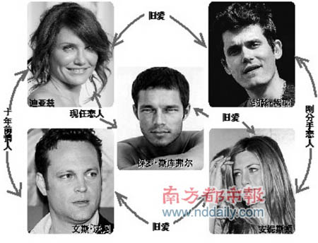 卡梅隆·迪亞茲和珍妮佛·安妮斯頓雖不是姐妹淘,但卻有驚人的相似點。兩人不僅都擁有金發碧眼,而且連對男友的喜好都相當相似。兩人都和約翰·梅耶(JohnMayer)、保羅·斯庫弗爾、文斯·沃恩(VinceVaughn)等人譜出一段戀情。(記者 張麟)