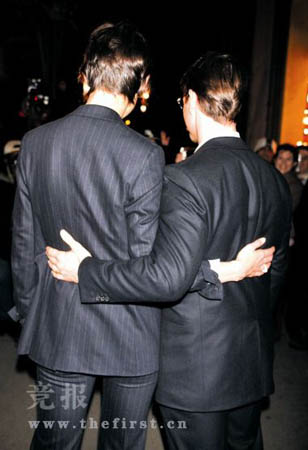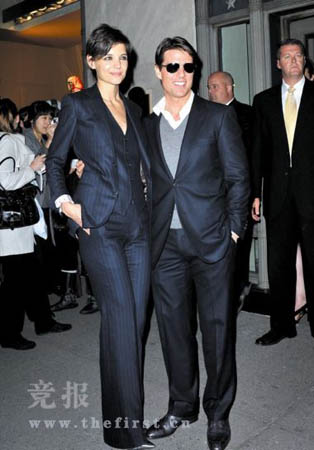 美國當地時間2008年10月20日,為慶祝凱蒂·霍爾姆斯加盟的《凡我子孫》的順利演出,湯姆·克魯斯、凱蒂·霍爾姆斯夫婦出席了在麥迪遜大道舉辦的雞尾酒派對。兩人同以西裝現身,霍爾姆斯高出阿湯哥半頭,又是短發,透過兩人背影看去,令人不禁尷尬到底誰是誰的“老公”呀?阿湯哥這次可謂面子全無!