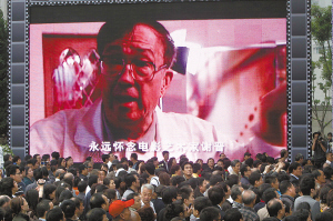 昨天下午,中國著名導(dǎo)演謝晉的遺體告別儀式在龍華殯儀館舉行,萬名群眾自發(fā)地從全國各地來到了龍華殯儀館,向這個曾帶給他們無數(shù)感動的電影大師告別。江澤民、溫家寶、李長春、習(xí)近平等黨和國家領(lǐng)導(dǎo)人均送來了花圈。謝晉生前的好友秦怡、李行、仲星火、牛犇,師出謝晉門下的劉曉慶、趙薇、范冰冰,以及演藝界人士吳思遠、朱時茂、濮存昕、奚美娟、張瑜、賈樟柯等都前來送別謝老最后一程。