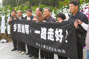 “鄉(xiāng)賢謝導(dǎo),一路走好!”昨日,為送謝晉最后一程,謝晉家鄉(xiāng)——上虞的父老鄉(xiāng)親們也專程派代表來到上海。“謝晉是我們的驕傲,他一生都在用電影為底層人民說話。現(xiàn)在他走了,但我們一定會把他的電影夢想繼續(xù)下去。”這位謝晉的老鄉(xiāng)說。