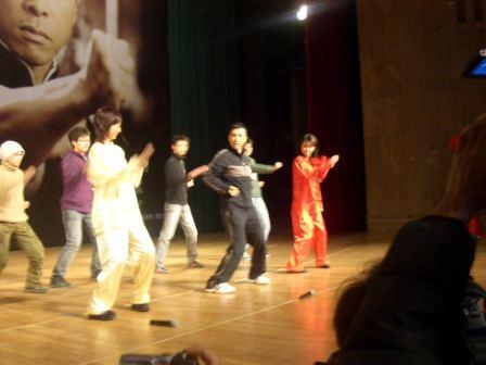 中新網(wǎng)11月28日電 11月27日,甄子丹來到北京大學(xué)百年講堂,為功夫賀歲片《葉問》宣傳造勢(shì)。當(dāng)天正趕上甄子丹的生日,北大百名學(xué)子為甄子丹合唱生日快樂歌,場(chǎng)面十分溫馨。甄子丹被學(xué)生們的熱情所感動(dòng),非常開心,更擺開架勢(shì)教北大學(xué)子打起了詠春拳。甄子丹稱,“《葉問》不只是功夫片,它在展示了詠春拳魅力的同時(shí),更發(fā)揚(yáng)了一種精神,我相信那是中國(guó)人的精神。”