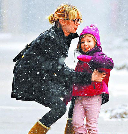中新網12月21日電 已故男星希斯·萊杰(Heath Ledger)的女兒瑪蒂達,和母親米歇爾·威廉姆斯相依為命。年僅3歲的她日前和母親上沙龍美甲,回家路上遇到大風雪,瑪蒂達很興奮,在雪地上跑給母親追。