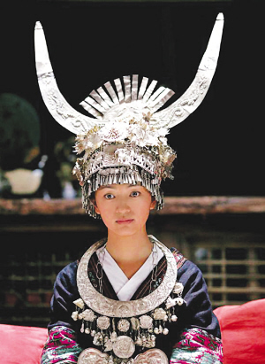 被馮小剛稱作“法寶”的羅海瓊在《我的丑娘》中,和女一號張少華有很多對手戲,兩人雖然不出演母女,但羅海瓊所扮演的豪門少婦在劇中和張少華有很多近乎母女之間的親情戲。《我的丑娘》中,羅海瓊穿得十分“豪華”,妝化得也很濃,而在《非誠勿擾》中亮相時是地地道道的天然美,一張亦中亦西的臉上未施粉黛,極具民族特點的布衣服飾,美輪美奐的銀飾頭冠顯得格外生動。據透露,這身少數民族服飾不僅為羅海瓊量體裁衣,而且從頭到腳都是由銀飾鍛造,純手工制作。銀冠、銀珈、銀項圈、披肩、項鏈、牙簽、髻簪、耳環、手鐲、戒指等樣樣俱全,總重量也超過了2000余克。