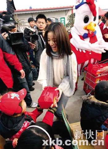 近日,作為愛心大使的林心如親赴四川地震災區,將一份份包括牛奶和面包的愛心營養餐包親手發給四川綿竹板房社區內清平學校的310名小學生。