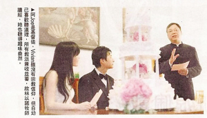 中西合璧,珠聯璧合,是個美好回憶。可是之后的報道,讓身為好友的MARK很有感觸,看了那些形容婚禮的字眼,什么“寒酸”“鬼祟”“CHEAP嫁 ”,“令我很不明白,人家辦喜事,為什么香港傳媒會有這樣損的文化?現場的朋友,都覺得這是最完美的婚禮,替一對璧人感到高興,他們能夠在彼此一手建立的家中,和四只貓兒一起分享爸爸媽媽的喜悅,是最完美的安排,他們光明正大的結婚,儀式完了立即和傳媒分享照片,每個人都有不受騷擾的權利”。