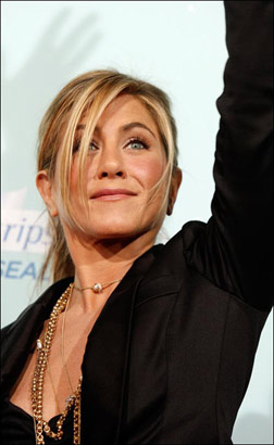 2月2日在美國洛杉磯的中國劇院迎來了萬人迷珍妮弗·安妮斯頓新電影《He's just not that into you》的首映禮,當晚的珍妮弗·安妮斯頓身穿巴寶利的黑色便服,干練中透著性感,當晚很多影迷到場,珍妮弗·安妮斯頓激動的向影迷們揮手。