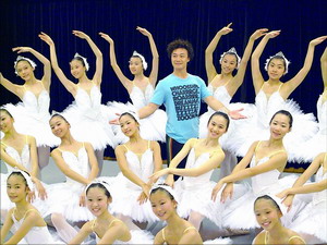 陳奕迅在一群芭蕾小舞者中間像一只胖天鵝。