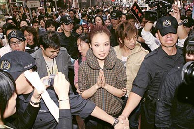容祖兒鬧市宣傳新碟 雙手胸前合十防"偷襲"(圖)