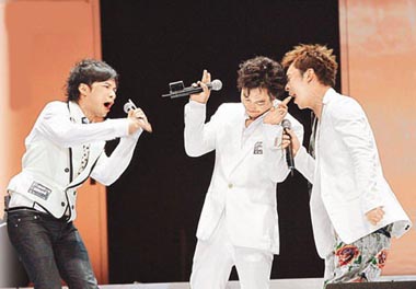 音樂會以10年回歸為主題,席間播放已故巨星張國榮、梅艷芳、羅文及黃霑等片段,平添傷感氣氛,祖兒慨嘆:“最不開心是有個人見證不到我的成績,就是我老師(羅文)。”阿詩則說:“最不開心同最大沖擊的是師父(梅艷芳)離開。”而10年內痛失父母的安仔,則以一曲《單車》懷緬至親。另外,日前新城舉行頒獎禮記者會,Eason慘被安仔取笑遲到后解釋:“是嗎?我后面還有人哦!不好意思,今年拿少個獎咯!”