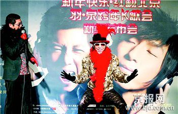 一向只開正經玩笑的羽·泉組合昨天卻開始走起“滑稽范兒”來。昨天下午,在宣布將于12月31日舉行工體跨年演唱會的發布會上,羽·泉二人以“大號蛤蟆鏡”、“大毛毛圍脖”、“大花花兒襯衫”的搞怪造型亮相。雖然陳羽凡宣稱自己已高燒兩天,但他做起“茶壺腿”、“水蛇腰”等各種滑稽造型時卻活力無限,就連胡海泉都“驚”得大叫“你一定是發燒把腦子燒壞了”!