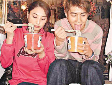 陳冠希和鄭希怡在MV中一起吃方便面。