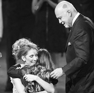 丈夫和兒子上臺獻花,席琳·迪翁和兒子緊緊擁抱。