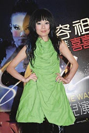 中新網(wǎng)2月27 日電 據(jù)香港明報(bào)報(bào)道,容祖兒穿上一襲翠綠色連身裙出席“雙喜臨門慶祝會(huì)”,席間除了公布兩張新碟均沖破白金唱片銷量外,她更宣布接替Twins原定4月于紅館的檔期,并加開3場。