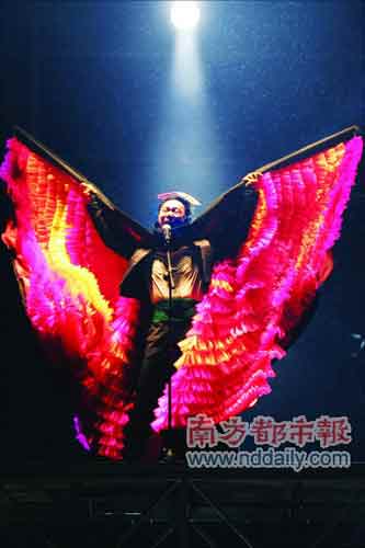 開場(chǎng)后,陳奕迅就唱了一連三首的快歌,下了不少苦心的他不顧地面濕滑,又是倒立又是和性感女舞伴火辣熱舞,引來(lái)了歌迷的陣陣尖叫。而整場(chǎng)演唱會(huì)的第一個(gè)高潮,是陳奕迅穿上華麗詭異的蝙蝠裝站在高臺(tái)上唱出《浮夸》時(shí),立即獲得全場(chǎng)高呼鼓掌。而之后出場(chǎng)所帶的印度舞和“千手觀音”,都讓觀眾大呼過(guò)癮,不斷制造人浪以示回敬。